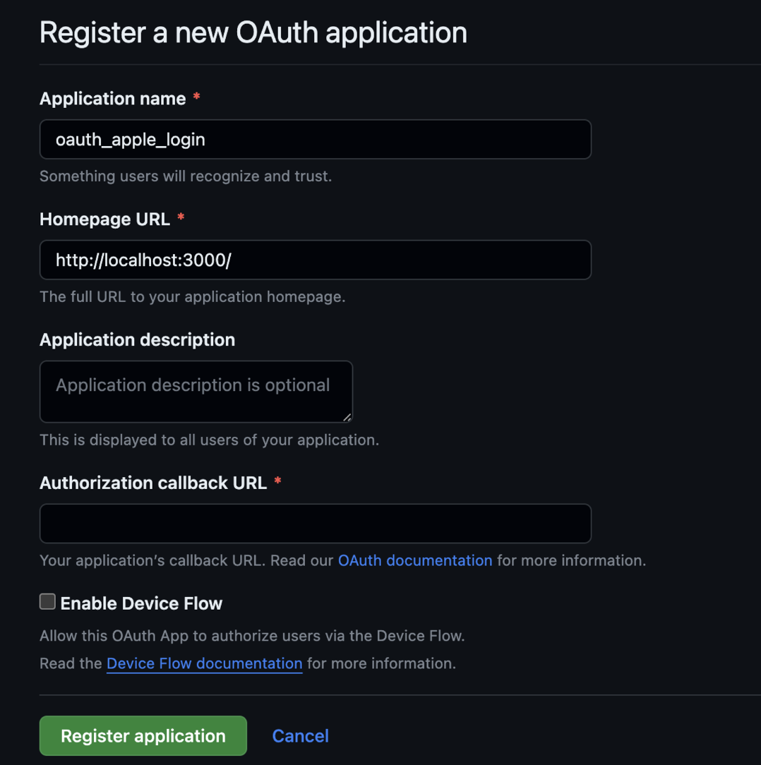 developer Settings 에 가서 oAuth Apps 를 하나 만들어줍니다.