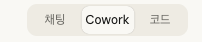아래처럼, 채팅, Cowork, 코드 탭이 있고 Cowork 를 선택해서 사용하시면 됩니다.