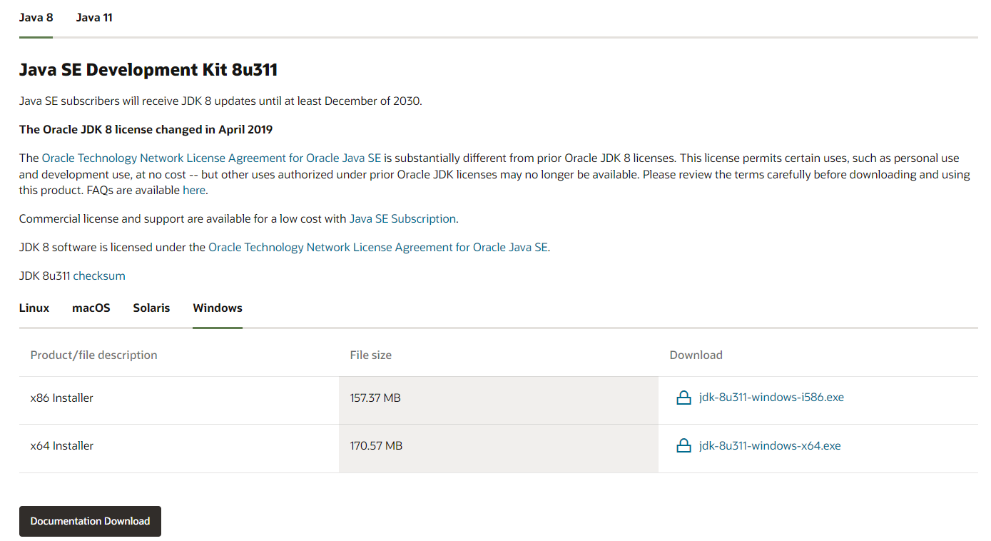 => (https://www.oracle.com/java/technologies/downloads/#java8-windows)